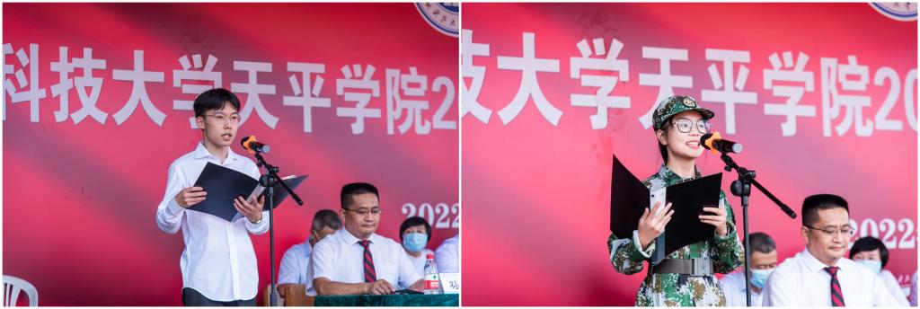 随后,各二级学院院长先后寄语新生,希望2022级新生珍惜时光、把握机会、学有所成、前程似锦。在领誓人的带领下,全体新生庄严宣誓,为即将开启的大学生活加油鼓劲,为自己的青春喝彩。