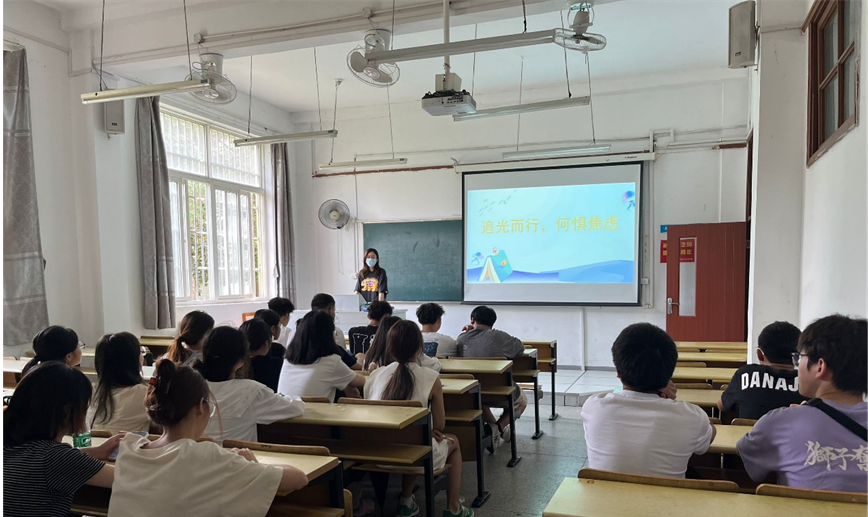 除以上活动,中心还组织辅导员开展有针对性的心理健康教育主题班会,其中老生班级开展 “追光而行,何惧焦虑”心理健康主题班会,通过班会,同学们掌握了一些调节负面情绪的方法,学会如何应对日常生活中的焦虑问题,培养了同学们积极的心理健康意识和习惯。新生班级重点聚焦于尽快转变角色,顺利适应大学生活内容。通过主题班会,班主任重点宣传了同学们在遇到心理问题后,校内外的求助途径,帮助同学们正确认识心理咨询,找到加强自身心理健康的途径和方法,提升学生心理保健意识。