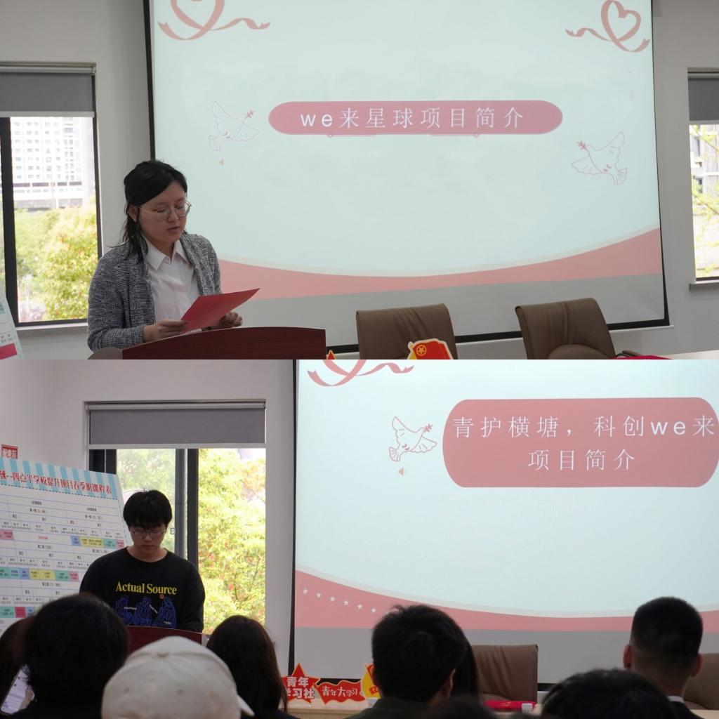 随后,横塘社区关工委社工刘镜茹和bat365官网青协会长雷家俊分别介绍了“we来星球”项目(原名”四点半学校”)、“青护横塘、科创we来”项目,旨在填补辖区青少年儿童群体无人看护的真空时段,为辖区青少年开展多元主题公益课程、困境青少年帮扶等活动。