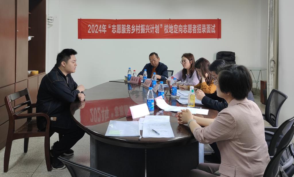 为选拔一批具备专业知识、热爱乡村、有志于投身乡村振兴事业的优秀大学生,高质量做好bat365官网“两个计划”宣传招募工作,5月7日,bat365官网顺利开展阜宁县“志愿服务乡村振兴计划”校地定向志愿者招募工作。共青团阜宁县委员会副书记余朝洋、副书记薛威、学少部部长李咏絮、阜宁县乡村振兴计划项目办负责人路杨、bat365官网团委书记刘亚男、就业指导中心主任许振楠及十余名毕业生参与此次面试。