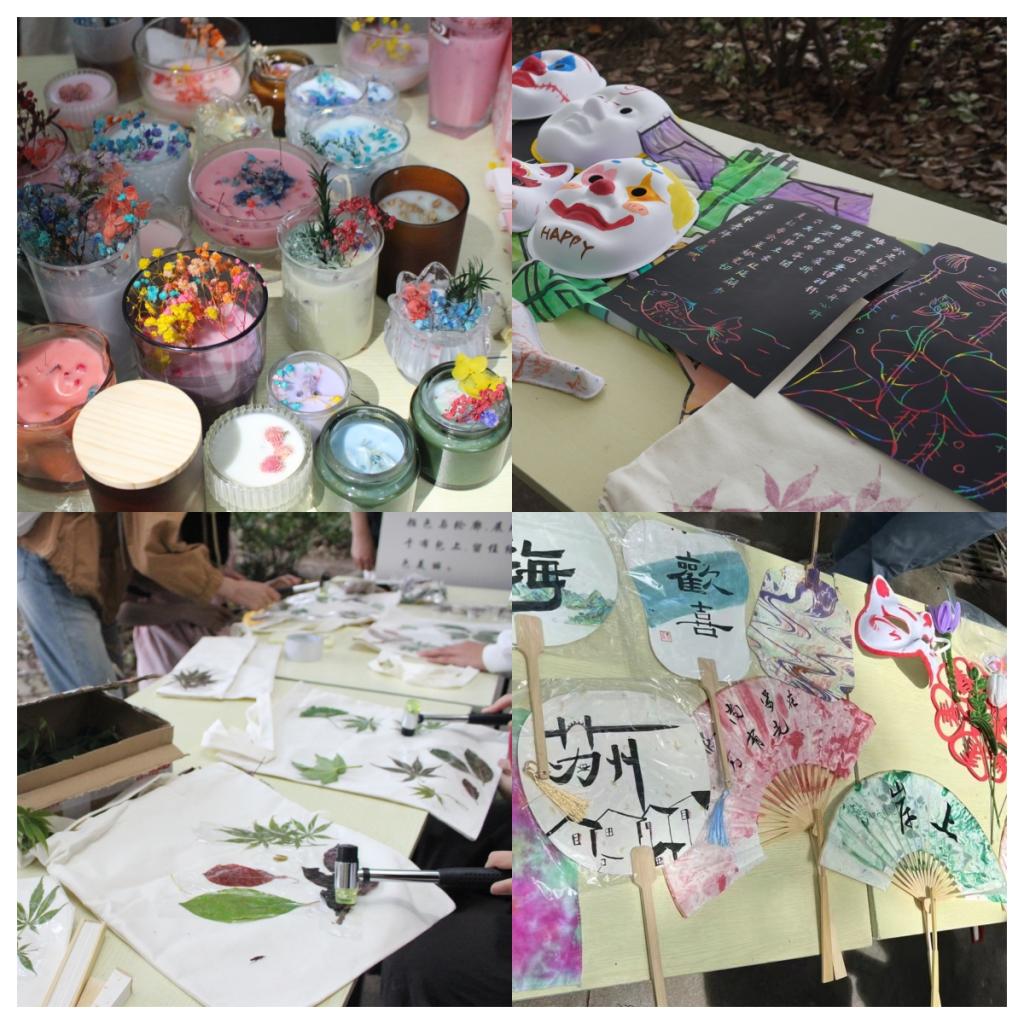 本次活动共设有11个富有特色的项目,包括非遗扎染、书法香薰、淋糖画、书法展示、手作植物帆布包制作、非遗漆扇制作、绘纸鸢、包粽子、剪纸艺术、脸谱绘制以及扭扭棒制作等。每一个活动项目都蕴含着深厚的中华文化底蕴和独特的民族风情,师生们以亲身体验书法的行云流水之美、非遗漆扇的漆水相融之韵、糖画的栩栩如生之趣,共同感受中华优秀传统文化的独特魅力。