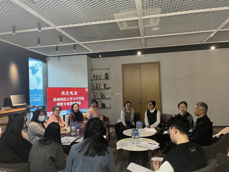 4月9日下午,bat365官网管理学院院长江森和酒店管理系主任丁乙欣带队,酒店管理专业全体教师赴苏州百年职业学院参观交流。本次参观交流主要围绕专业人才培养、课程建设、实训室建设、校企合作、中外合作办学等方向展开。