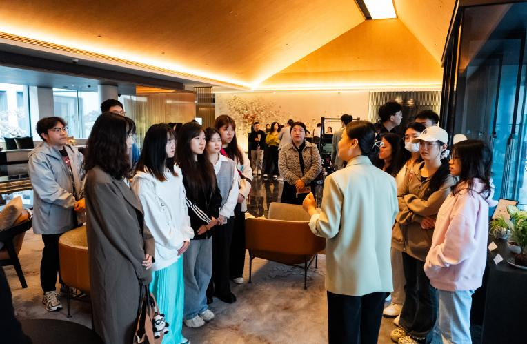 苏州金普顿竹辉酒店人力资源经理Ella带领学生们参观了酒店的前台接待、客房、餐饮等重要部门,并有机会与一线员工进行交流,了解他们在日常工作中的职责与挑战。随后,人力资源总监Vivian为学生们带来了一场精彩的宣讲会,系统阐述了酒店业的发展趋势、职业前景以及酒店对人才的需求标准,分享了自己在酒店行业的从业经验,为学生们提供了宝贵的职业规划和发展建议。