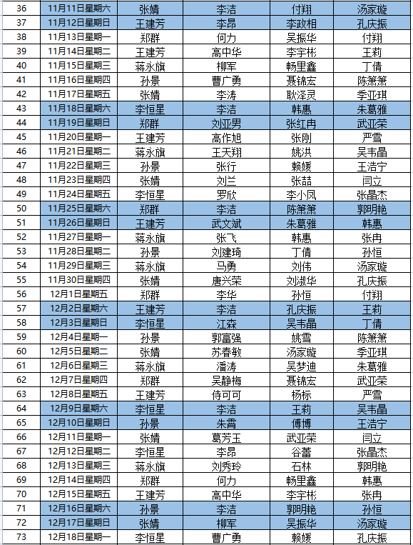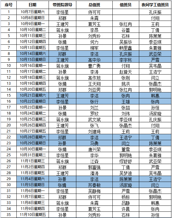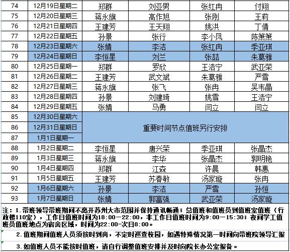 bat365在线中国官网登录入口值班安排表(2023年10月7日—2024年1月7日)