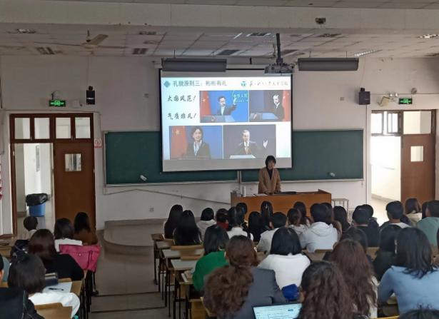 语言文化学院张蓉蓉老师以购物礼貌用语作为《第二外语》法语课程的教学主题,引入中国文化中文明的购物礼仪以及“仓廪实而知礼节,衣食足而知荣辱”中国文化哲学,在中法两国礼貌用语的对比中,提升学生的外语语言能力,增强学生的民族文化自信。
