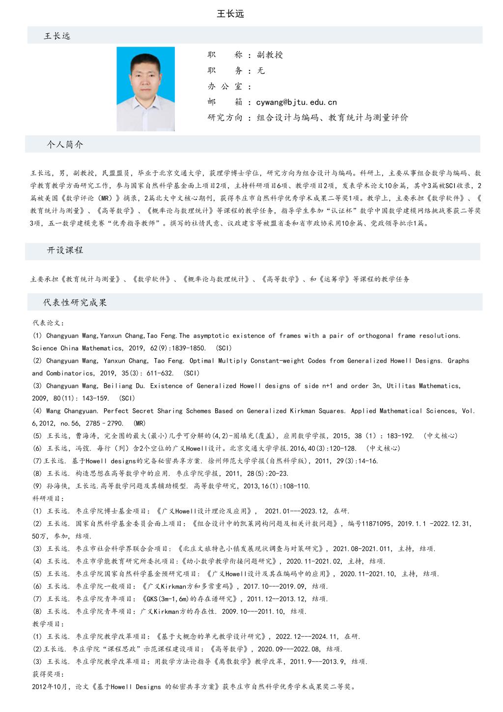 王长远老师个人简介
