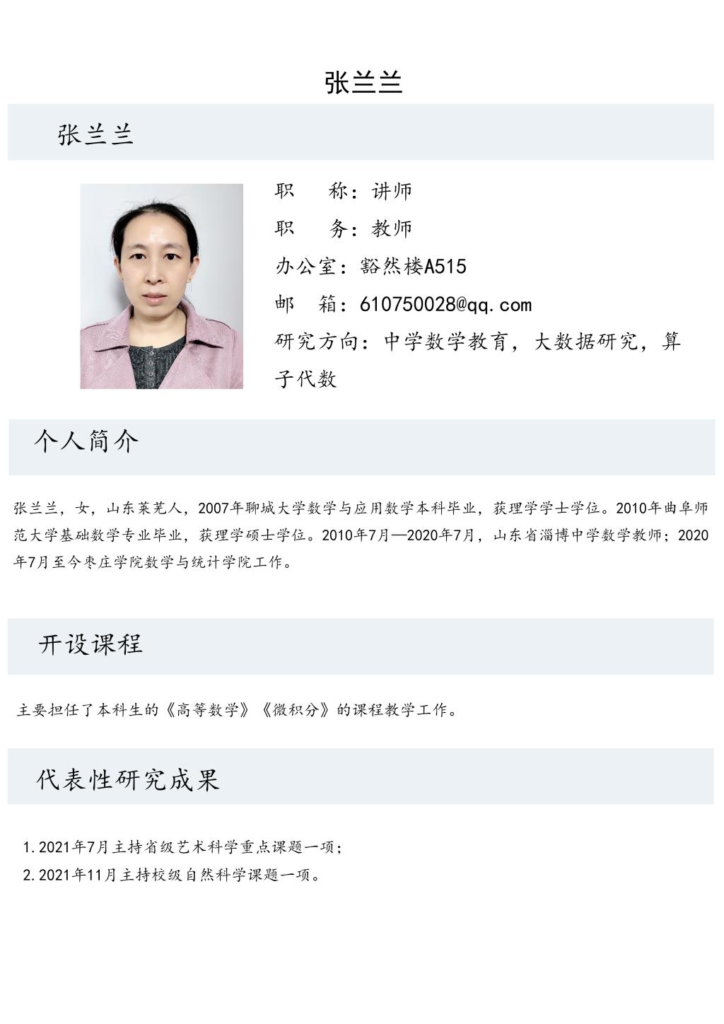 张兰兰老师个人简介