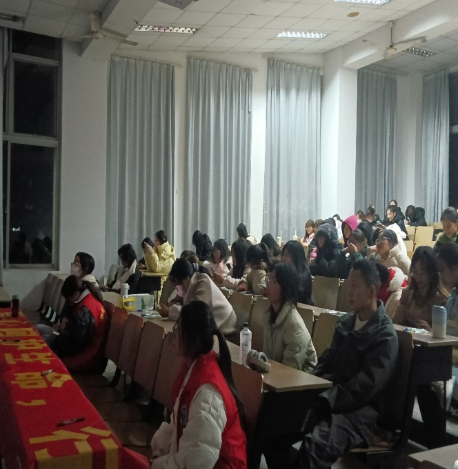为了让更多的人了解艾滋病,大学生青年志愿者协会还组织了一次防艾观影活动。在活动开始前,志愿者们给观众们发放了防艾宣传手册,方便观众们在看电影时也能了解艾滋病。在电影中,男主人公身患艾滋病却意志坚定,积极向上的人生态度引得在场观众潸然泪下。观影活动结束后,志愿者们组织观众有秩序的在“用心呵护生命,行动抵御艾滋“的横幅上签名以表对防艾行动的支持。