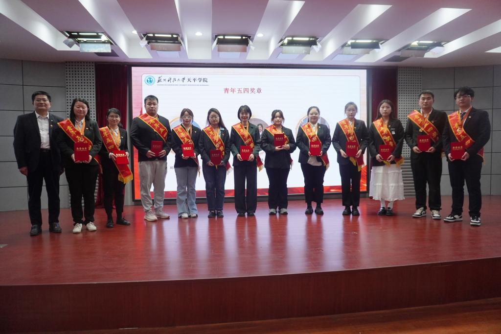 表彰大会在激昂的国歌中拉开帷幕。院团委副书记刘建琦宣读了《关于表彰2023年度院“五四红旗团总支”、“青年五四奖章”等先进集体和优秀个人的决定》。语言文化学院团总支、土木工程学院团总支荣获2023年度院“五四红旗团总支”称号,财务2221班团支部等16个团支部荣获2023年度院“五四红旗团支部”称号,郑雪莲等14名青年荣获2023年度院“青年五四奖章”称号,孙恒等65名青年荣获2023年度院“优秀共青团干部”称号,陈中蒙等178名同学荣获2023年度院“优秀共青团员”称号,财务2122班团支部“挺膺担当 传承有我”等8个项目荣获“优秀主题团日活动”。现场领导为获奖集体和个人代表颁发荣誉证书、奖状。