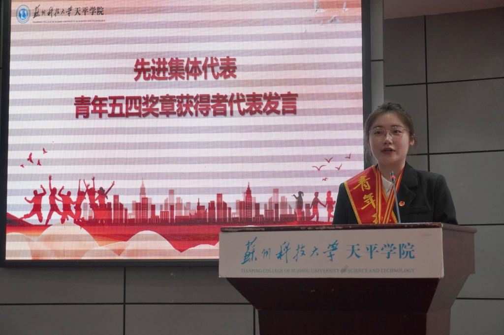 大会中,先进集体和优秀个人代表发言。“青年五四奖章”获得者韦佳贤表示,作为一名新时代青年,深知自己肩负的责任与使命,将化为榜样力量,书写青春之歌,担当起新时代下的青年使命,以实际行动发挥大学生党员的先锋模范作用。作为“五四红旗团支部”获奖集体代表,张佳懿从“思想引领、组织建设、志愿服务”等方面展示了团支部的成长之路、奋斗之旅。