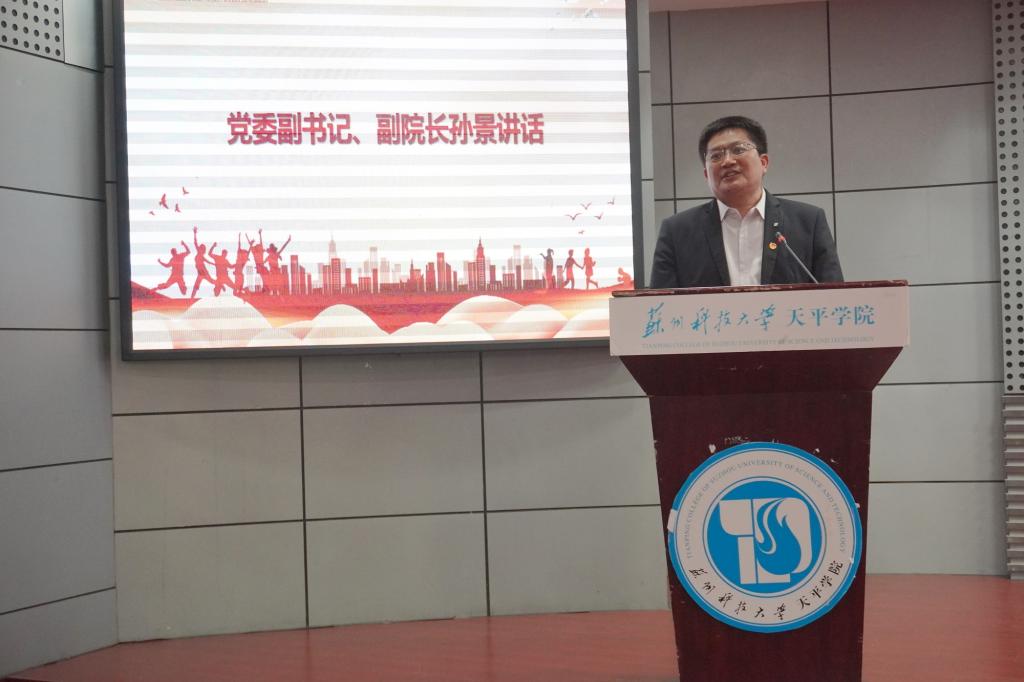 院党委副书记、副院长孙景在讲话中向青年朋友们致以节日的问候,希望广大青年要珍惜时光,不懈进取,用智慧和汗水在实现中华民族伟大复兴的历史进程中,更好地继承与弘扬五四精神,谱写无愧于新时代的青春之歌。他希望广大团员青年要听党话、跟党走,在坚定理想信念的道路上砥砺前行;希望各级团组织要沉下心、俯下身,在团结服务青年的一线中汲取力量;希望广大团学干部切实履职尽责,以率先垂范的实际行动带领广大同学听党话、跟党走。
