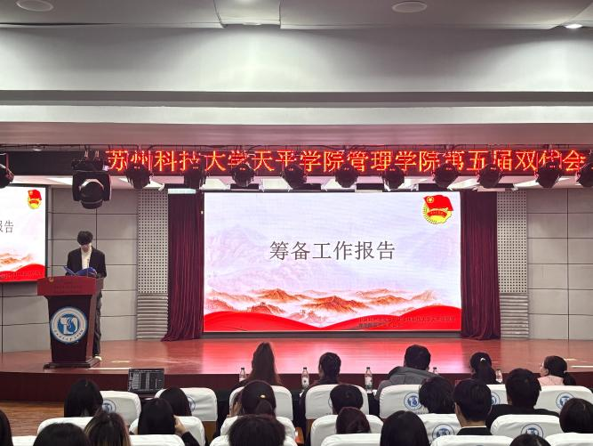 在预备会议中,由方嘉诚同学代表管理学院筹备委员会向大会做筹备工作报告,张袁赟同学代表管理学院第五次学生代表大会委员会向大会作代表资格审查报告并提交大会审议通过。