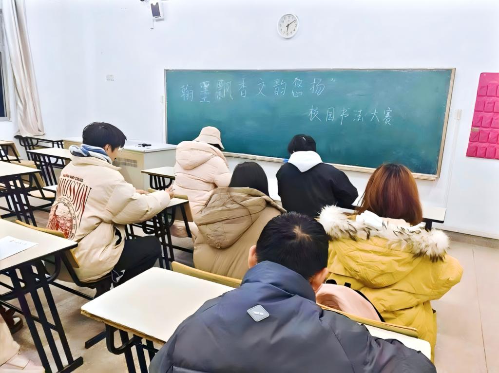 2024 年 12 月 22 日,环境科学与工程学院于 2 - 304 教室成功举办了“翰墨飘香,文韵悠扬”校园书法大赛。当日,现场气氛热烈,墨香四溢,同学们踊跃参与,尽情展示书法才艺。