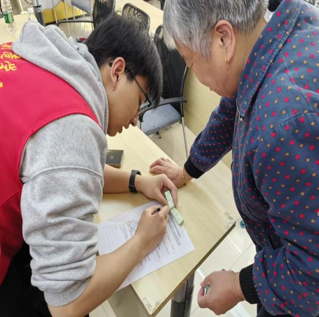 活动现场,志愿者分工协作,有序开展服务。志愿者们为老人测量血压、血糖,并耐心讲解慢性病防治知识。针对部分不识字或填写困难的老人,志愿者一对一协助完成体检信息登记,确保数据准确无误。活动结束后,全体成员主动整理医疗器材、清扫场地,维护社区环境整洁。