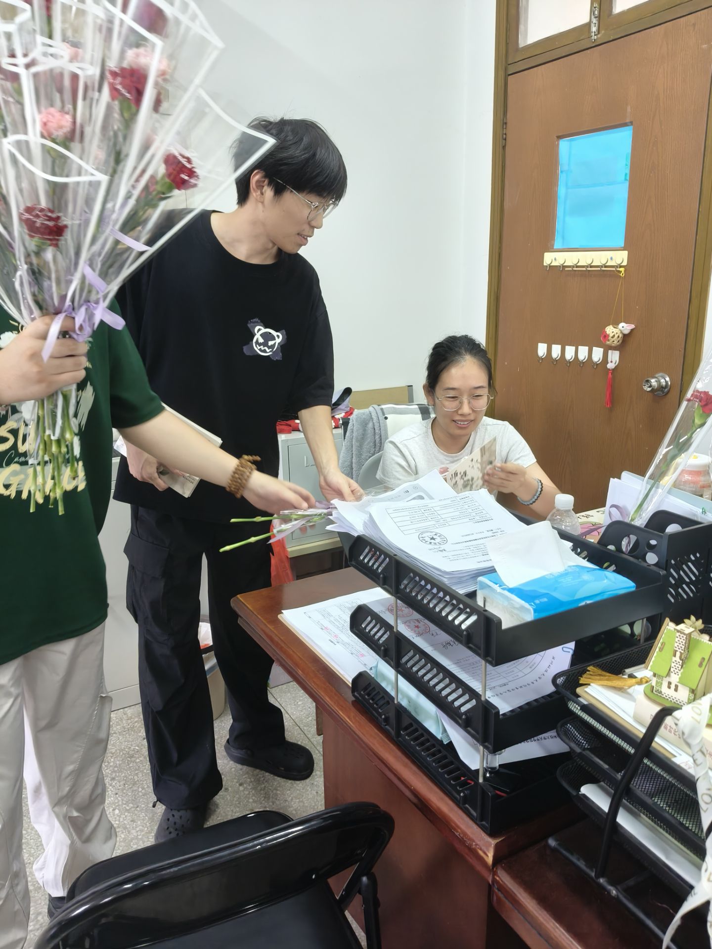 当老师们接过鲜花与贺卡的那一刻,欣慰的笑容瞬间在脸上绽放。一声声真挚的“老师,节日快乐”,一份份承载满满心意的礼物,不仅让教师们在这个专属节日里感受到浓浓的温暖与尊重,更如一条无形的纽带,悄然拉近师生距离,让尊师重教的良好风尚在学院愈发浓郁,为学院营造出和谐美好的育人氛围。