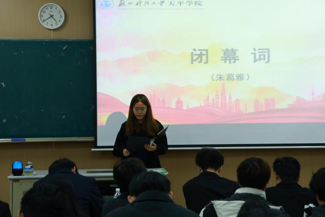 大会最后一项议程,由土木学院朱葛雅老师发表闭幕词。她首先对大会的圆满成功和新当选的新一届总支委员会委员表示祝贺,向全体代表及为大会顺利召开付出辛勤努力的工作人员表示感谢。她指出,本次大会是一次凝聚共识、团结奋进的大会,也是一次继往开来、谋划发展的大会。新一届总支委员会将以此次大会为契机,深入学习贯彻习近平新时代中国特色社会主义思想,全面落实党的教育方针,坚守为党育人、为国育才初心使命,聚焦学科建设、人才培养、服务师生等重点工作,不断增强基层组织的凝聚力、战斗力和创造力。最后大会在庄严的歌声中胜利闭幕。
