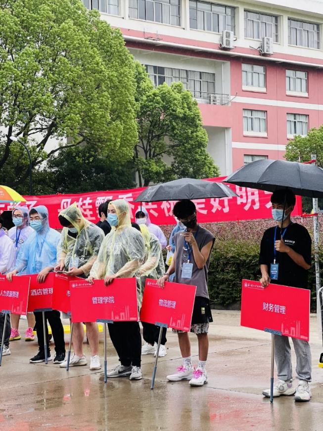 为欢迎2022级新生,bat365在线中国官网登录入口管理学院于2022年9月3日在校内组织迎新活动。bat365官网的志愿者们一大早就布置好了迎新场地,举着指示牌,在风雨中耐心地等待着新生们的到来。