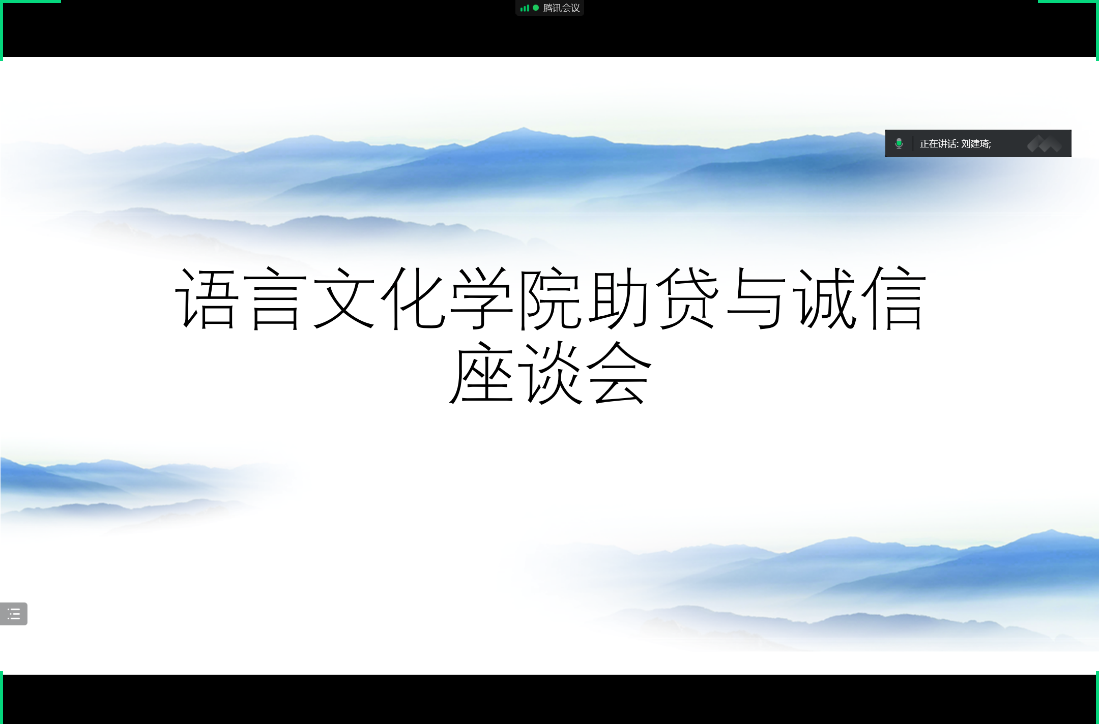 为了进一步增强大学生按时偿还国家助学贷款的意识,营造重信守诺的良好氛围。5月14日下午,语言文化学院在线上召开了助贷与诚信教育座谈会。语言文化学院学工主任刘建琦、辅导员丁倩、申请助学贷款的毕业生及低年级申请助贷的学生参加了本次活动。会议伊始,刘建琦老师就助学贷款与诚信之间的关系向同学们进行了阐述,并结合自身案例着重强调了诚信在现实生活中的重要性。随后,刘老师向同学们提出了三点希望:第一,希望申请助学贷款的每位同学要始终怀抱感恩之心、励志成才,积极以实际行动回报学校、政府和社会;第二,希望每位同学毕业后务必要按时付息还款,做到诚实守信;第三,希望毕业生走上工作之际,要学会先做人、再做事,尽快打开工作新局面,并祝同学们工作顺利、生活愉快。