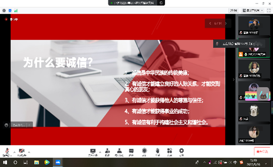 为使学生明确诚信的含义,理解诚信对于学生自身发展和为人处世的重要意义,管理学院于2022年5月23日至5月29日举办了“诚信教育”系列活动。引导学生崇尚诚信,远离虚伪欺诈。
