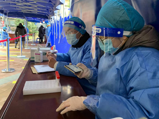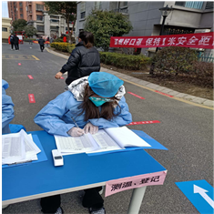 人力资源管理21级的赵媛毅在全区发出全员核酸检测的指示后,作为一名肩负责任感的当代青年大学生,成为了一名志愿者。在志愿服务期间,她积极服从统一调度管理,支援一线防控。每天凌晨五点自行到达临时站点报到,协助维护核酸检测采样点秩序。