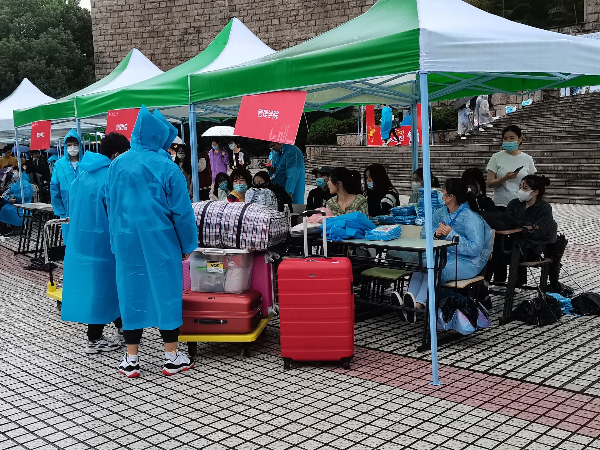 为了营造健康安全的良好环境,全校上下高度重视开学疫情防控工作。我校积极响应国家全民战疫号召,此次开学相比以往增加了许多看似繁琐实则必要的安保措施。开学当天,虽然苏州一直乌云密布,一早就淅淅沥沥地下起了小雨,但是我校参与迎新活动的志愿者们一早就穿着雨衣等在了学校门口、签到处及宿舍楼下。从新生进校门的那一刻开始,志愿者们就再也没有休息过,他们有条不紊地帮忙搬运行李、带着新生去签到处报到、领着新生熟悉校园。新生一个接着一个地进来,他们在校园里跑了一个又一个的来回,雨水与汗水交杂着落在了他们的身上,却没有一个人发出抱怨。一直到所有新生完成报到注册,他们才得以休息。各项工作的有序开展确保了21级新生的顺利报到,同时也代表着本次迎新活动取得了圆满成功。
