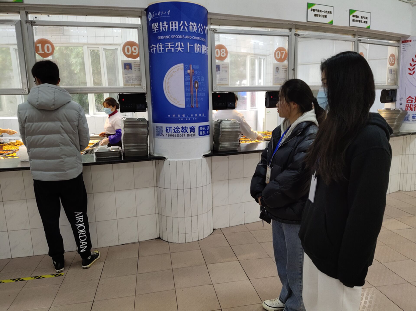 六名志愿者于上午10:30在食堂一楼门口集合,明确所需任务后根据安排来到打饭窗口旁。食堂志愿者服务活动的主要任务是就餐时间内维持食堂秩序、提供路线指引,监督口罩佩戴及体温检测情况或其他临时性工作。维护食堂内的秩序,是确保人与人之间的安全距离和就餐过程中的稳定,同时倡导“光盘行动”,提倡节约粮食不浪费的原则。给予了同学们对于就餐途中产生问题的提问并提供解决。在近两小时的活动中,让志愿者们更深刻的接触到食堂平日里巨大的工作量,让就餐的同学们感受到食堂就餐文明秩序的重要性,志愿者服务的热情。