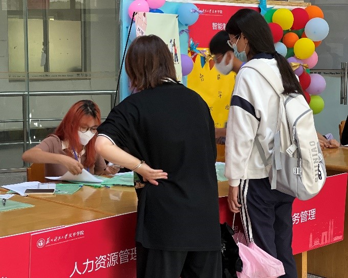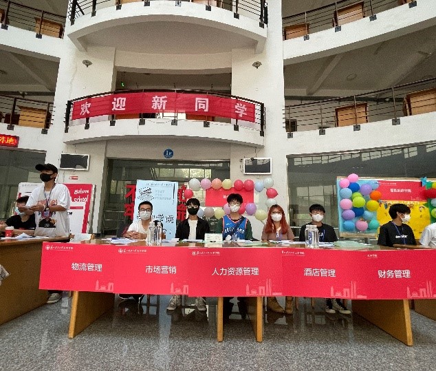 为欢迎2022级新生,bat365在线中国官网登录入口管理学院于2022年9月3日在校内组织迎新活动。bat365官网的志愿者们一大早就布置好了迎新场地,举着指示牌,在风雨中耐心地等待着新生们的到来。