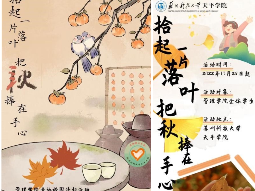 秋雨绵绵,落叶飘零。为升华劳动教育实践内涵,管理学院组织“落叶传情”活动,利用校园清扫过程中收集到的落叶制作各类手工艺品,通过为飘零的落叶赋予新生,希望同学们在繁忙的学业中得到放松,感受秋天的美和生活的温度。