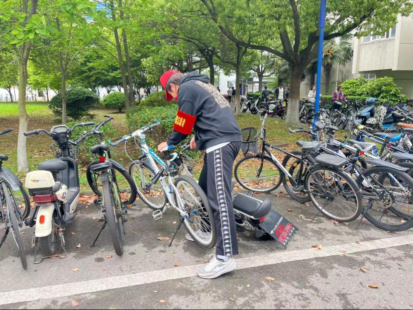 春暖四月,无限美好。为营造舒适、整洁、美丽的校园环境,提高同学们的整洁环保意识,提升资助育人成效。4月24日,艺术学院组织学生开展爱心回馈志愿服务活动,集中整理教学区楼下散乱自行车。绿化带旁边自行车的数量大,停放不整齐,部分车辆不按照规定停放在规定区域内,也有一些车辆长期不使用自然倒落占用停车位置。志愿者们积极响应号召,利用中午就餐休息的时间,戴上专属小红帽,撸起袖子,一辆一辆认认真真整理,除了整理好车辆也随手带走垃圾倒入附近的垃圾桶内。爱护校园整洁从我做起,志愿者们用自己的实际行动践行志愿服务,感恩和回报校园,为学校环境贡献一份力量。