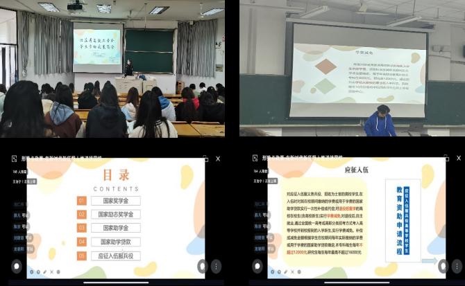 宣讲会上,主要围绕国家“奖、助、贷、勤、补、绿色通道+校内资助”多元混合、互为补充的资助体系,和以国家为主、学校为辅、社会为补的资助模式进行讲解,重点解读了国家奖学金、国家励志奖学金、国家助学金和应征入伍服兵役国家教育资助等资助政策。其中,辅导员老师围绕国家助学贷款详细讲解了贷款的申请条件、申请对象、申请流程;结合学生入伍情况详细讲解了应征入伍服兵役教育资助金额、申请时间和所需材料等;对毕业年级特点,重点讲解了毕业生基层就业补助和贷款还款最新政策和注意事项等。