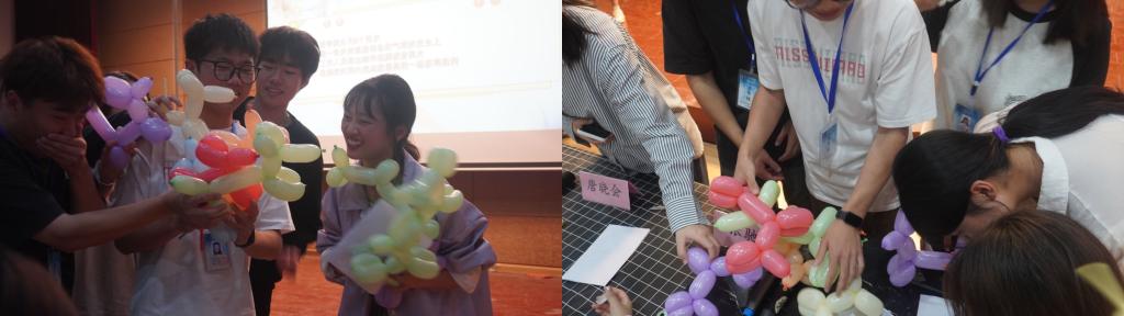 之后,心心相印游戏展现了宿友之间的默契配合。参与者们意犹未尽地将各类难度递增的游戏,通过默契、合作与沟通来完成,紧张而刺激的竞技环节在全场掌声中圆满结束。紧接着,手工捏气球游戏和加时赛:吹气球比赛,俯卧撑比拼成功引发了现场的热烈气氛。男生和女生们通过手工操作和体力的较量,展现了他们的勇往直前、坚韧不拔的拼搏精神,活动现场掀起了一片团结与互助的浪潮。