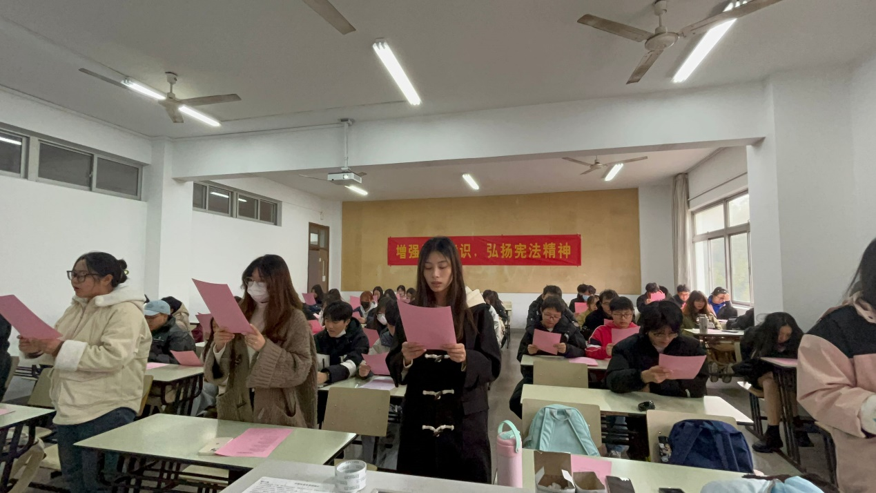 宪法是国家根本法,是治国安邦的总章程,是党和人民意志的集中体现。党的二十大报告提出,要完善以宪法为核心的中国特色社会主义法律体系,强调要加强宪法实施和监督,健全保证宪法全面实施的制度体系,更好发挥宪法在治国理政中的重要作用,维护宪法权威。2023年12月4日是第十个国家宪法日,为增强bat365官网师生守宪法的意识,帮助同学们了解宪法的重要性与意义,营造青年关注法治、学习法律的氛围,bat365在线中国官网登录入口语言文化学院开展了宪法晨读活动。