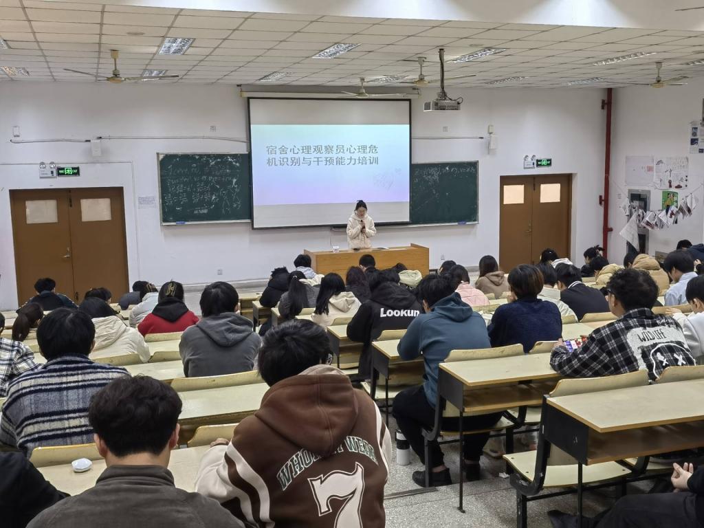 本次培训从宿舍心理观察员的角色与职责、大学生心理健康和心理危机识别与干预等方面进行讲授,通过案例分析,引导宿舍心理观察员们理解心理健康对个人成长和未来发展的重要性,并从关注对象、危机识别、开展帮扶等方面向同学们传授了大学生心理问题的应对方法。