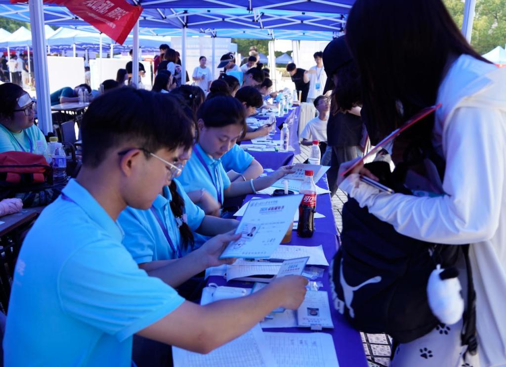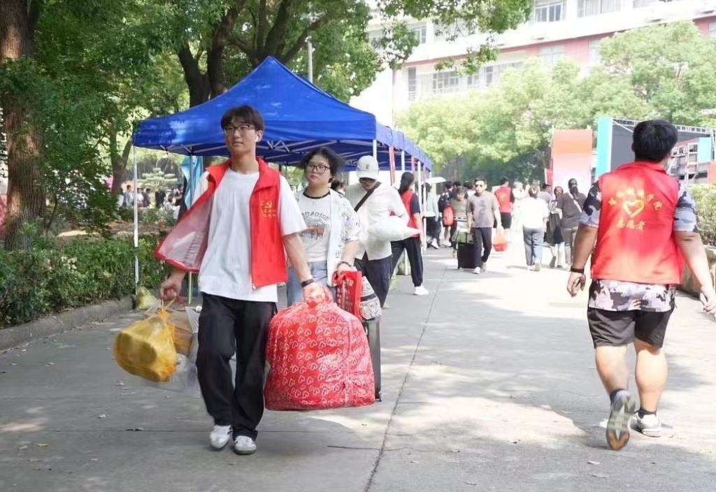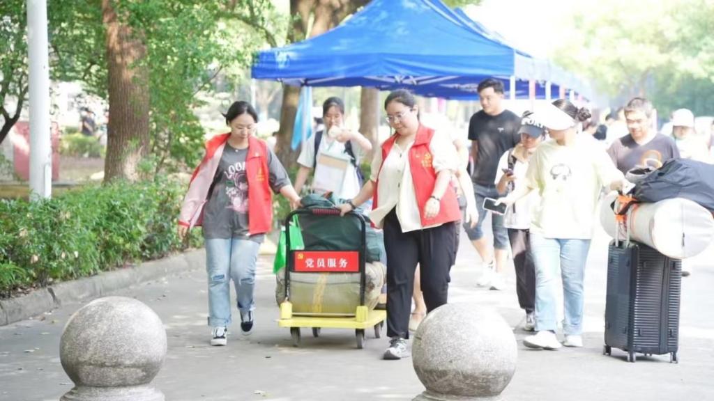 迎新现场,语言文化学院动员了学生助理、学生干部及志愿者等百余人,组成了一支迎新志愿服务队伍。他们在迎新点、校门、报到处、公寓区为新生提供全过程、全方位的志愿服务,协助新生完成登记、物资领取以及行李搬运,帮助他们迅速融入校园,熟悉大学生活。