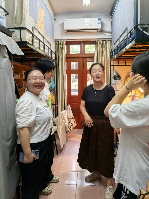 为了更深入地了解新生的住宿与生活情况,管理学院全体辅导员走访了新生宿舍。每到一处,老师们都耐心询问新生们入住后的感受,是否有不适应之处,并细心观察宿舍环境,给予针对性的建议。面对新生们提出的六人间稍显拥挤的问题,老师们不仅表示理解,还现场传授了实用的收纳技巧,鼓励大家合理利用空间,打造整洁舒适的居住环境。