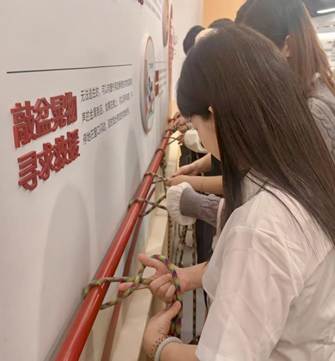 首先映入眼帘的标语是:人民至上、生命至上,保护人民生命安全和身体健康可以不惜一切代价—习近平,让师生感受到党建引领城市安全的信念。活动现场,消防知识问答与技能实训环节成为此次活动的亮点。讲解员结合典型案例,系统讲解了火灾成因、预防措施及应急逃生策略,随后指导师生进行灭火器实操演练。从”提、拔、握、压“的四字口诀到灭火站位选择,师生们依次上阵成功扑灭模拟火源。在求生绳结教学区,专业人员手把手传授逃生结、双套结等实用绳结技巧,参与者反复练习直至熟练掌握,将理论知识切实转化为自救本领。