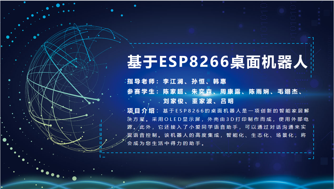 青春奋进学思想,科创报国建新功。5月28日,第十八届“挑战杯”全国大学生课外学术科技作品竞赛江苏省选拔赛决赛在常州大学落下帷幕。经激烈角逐,bat365官网机械20级学生陈家超、朱奕森所参赛项目《基于ESP8266桌面机器人》荣获第十八届“挑战杯”黑科技专项赛江苏省选拔赛决赛恒星级项目。