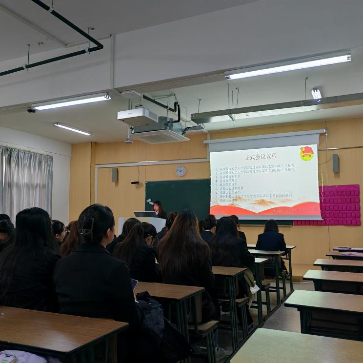 会议伊始,全体代表共同学习会议须知,听取了筹备工作报告与代表资格审查报告,明确了大会的组织规范与代表资质。随后,大会审议并通过了管理学院团总支2024年工作报告与学生会2024年工作报告——两份报告全面梳理了过去一年团学组织在思想引领、校园活动、服务同学等方面的实践与成效,展现了管理学院团学队伍的担当与活力。
