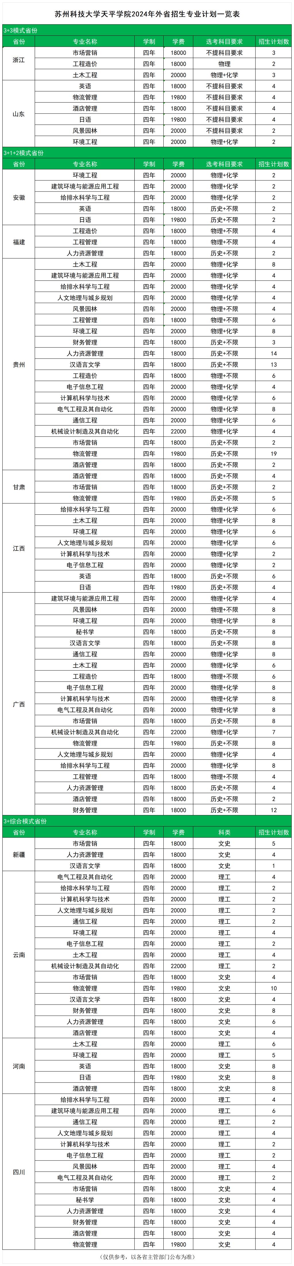 bat365在线中国官网登录入口2024年外省招生计划及收费一览表